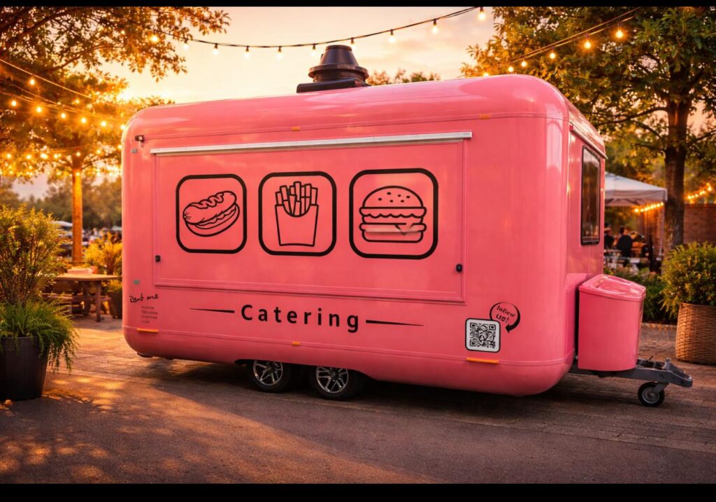 〉Der Verkaufsanhänger ist nicht per Hand bewegbar und muss direkt an den vorgesehenen Stellplatz gefahren werden.