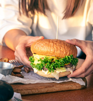Alle Burger auf fluffigem Briochebrötchen mit saftigem Rinder-Patty – auf Wunsch auch Halal oder als vegane Variante erhältlich.